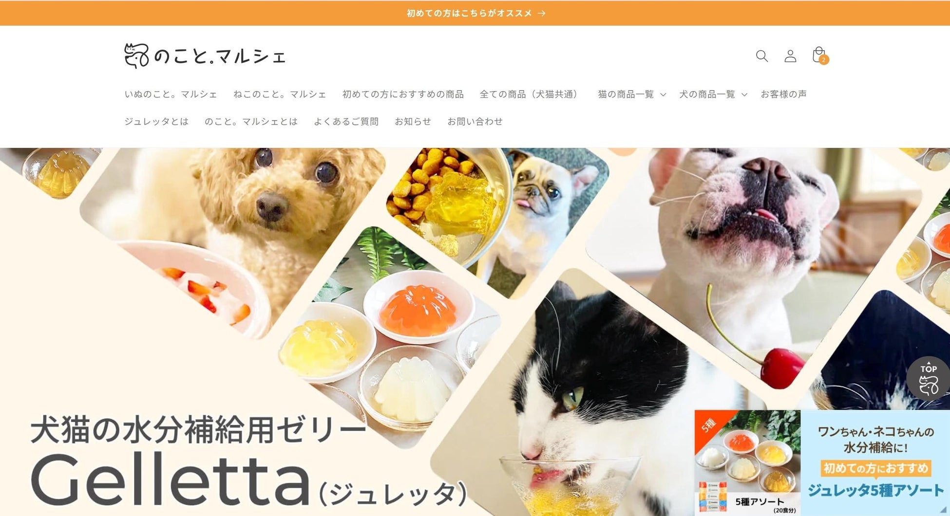 ペットとその飼い主様が豊かな日々を過ごせるようなグッズ販売・発信を目指しています。犬猫の水分補給用ゼリーの素「Gelletta®(ジュレッタ)」など、からだに優しい商品を販売中です。