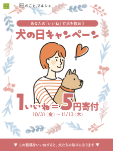 株式会社Insityが運営する「のこと。マルシェ」ではInstagramの犬の日投稿が「いいね」されると、1いいねに付き5円を、公益社団法人アニマル・ドネーションに寄付するキャンペーンを開始します。