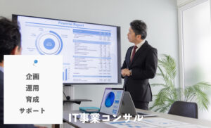 クライアント企業のIT部門のサポートを行います。コンサルティングと称してはいますが、実際に実行する(+αの価値提供)ところまでをサポートしているのが当社の特徴です。ITの専門部門がない中小企業様にとって事業を推進する「経営企画室」としての役割も担わせていただいております。
